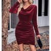 Женская мода новые элегантные однотонные платья с открытыми плечами и длинными рукавами из бархата — купить товар онлайн с бесплатной доставкой по всему миру!