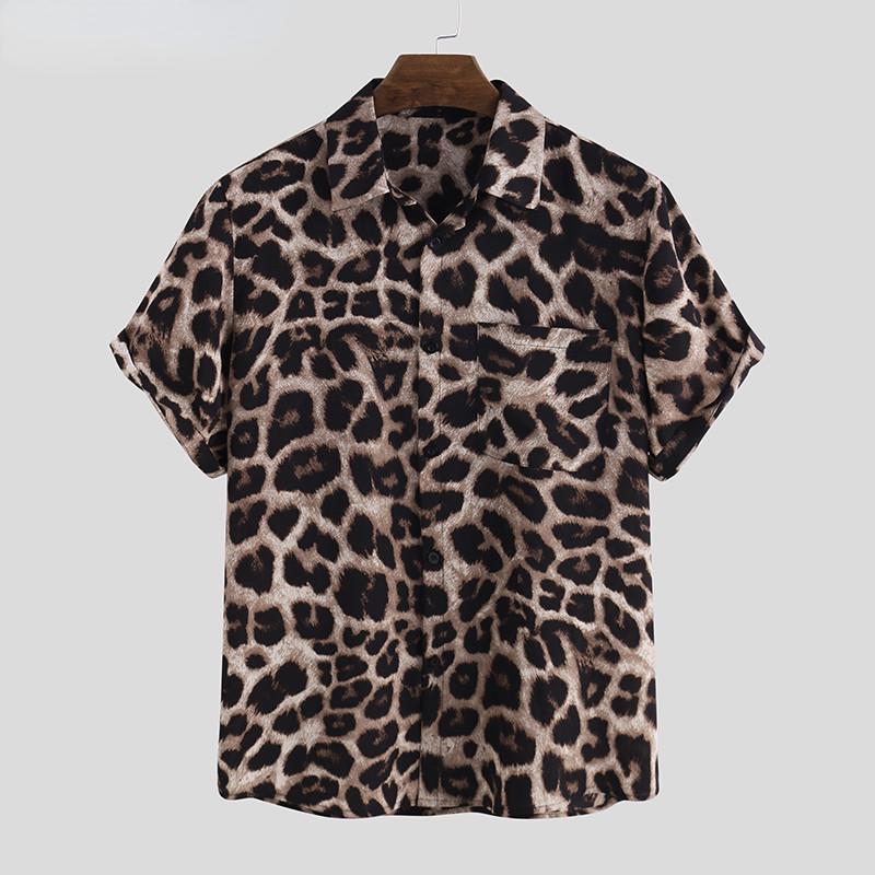 Повседневная мужская рубашка с леопардовым принтом, летние гавайские рубашки с короткими рукавами и модными топами с принтом