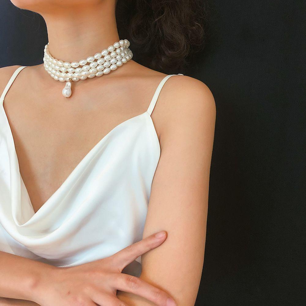 Модные женские вечерние украшения многослойные нерегулярные жемчужины нагрудник колье кулон ожерелье