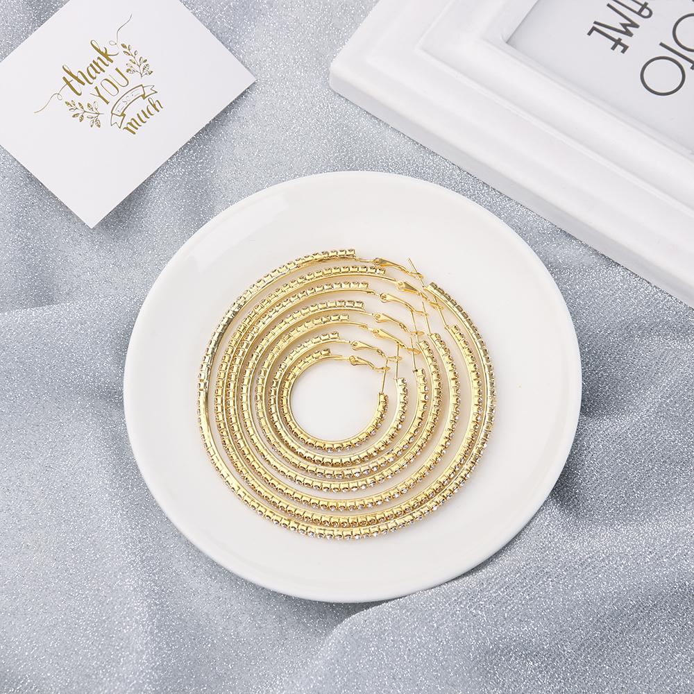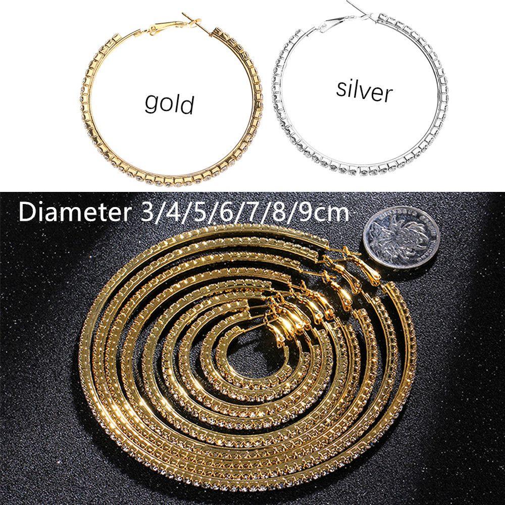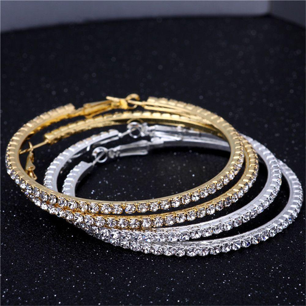 Модные большие серьги-гвоздики из серебра и золота со стразами, серьги-подвески с кристаллами