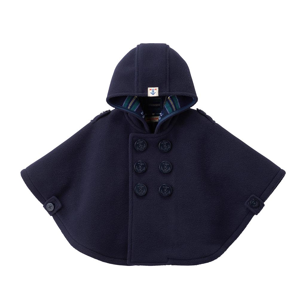 Плащ-накидка пончо из флиса, однотонный, сделано в Японии, для мальчиков и девочек, для малышей, для детей, детская одежда, бесплатная одежда, темно-синий [MIKI HOUSE] для детей 10-3860-491