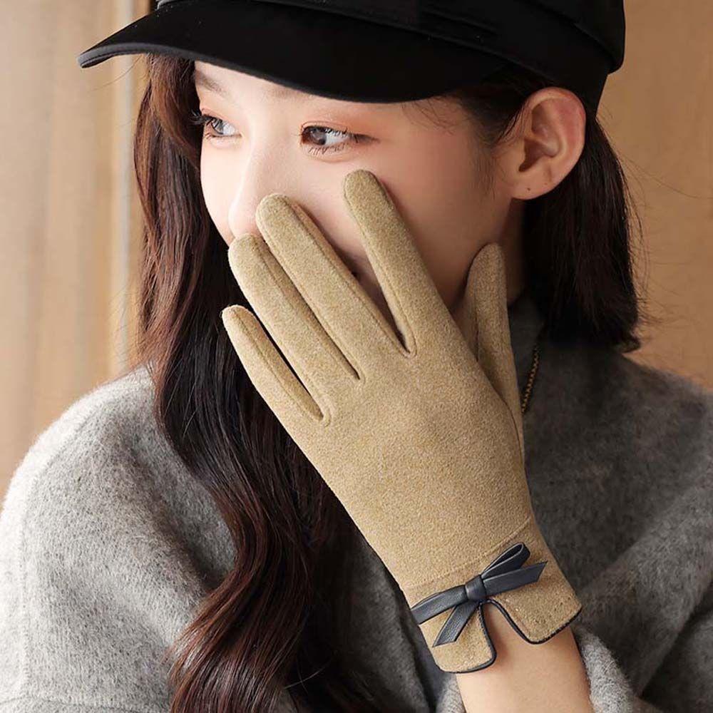 Bowknot Plus Толстые ветрозащитные женские зимние перчатки Нескользящие перчатки Женские перчатки с пальцами