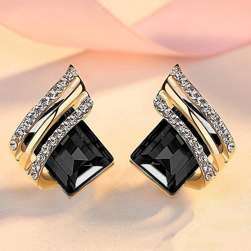 Серьги-гвоздики Huitan Modern Black Stone Gold Color для женщин, шикарные свадебные аксессуары, новые модные женские ювелирные изделия, прямая поставка — купить товар онлайн с бесплатной доставкой по всему миру!