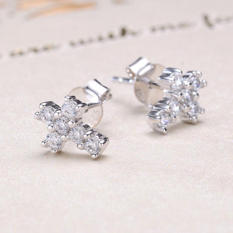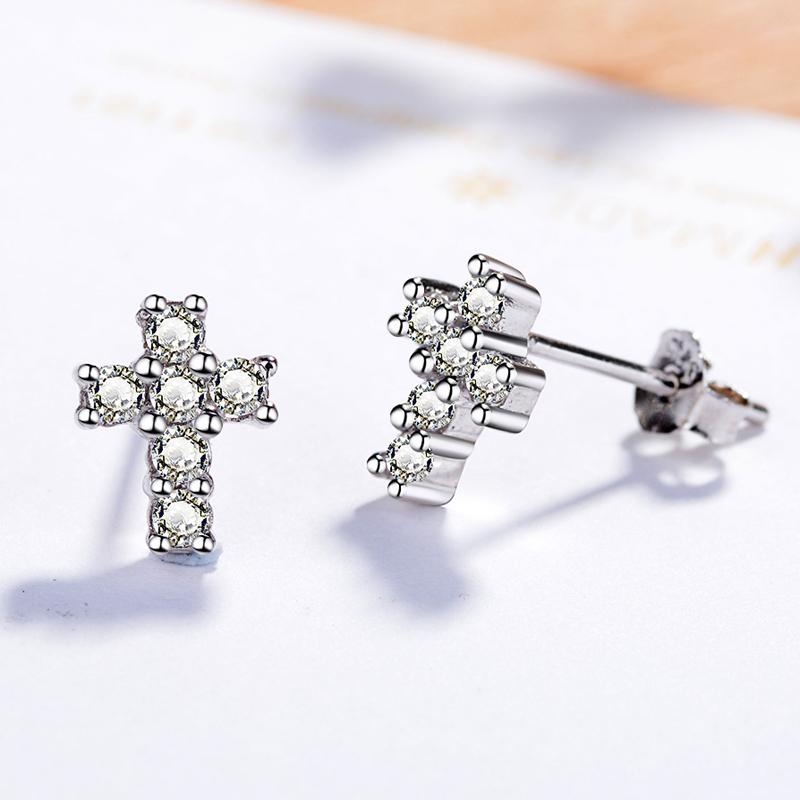 Серьги-гвоздики с маленьким крестиком из стерлингового серебра для женщин/детей, полностью прозрачные циркониевые подвески, модные ювелирные изделия в подарок