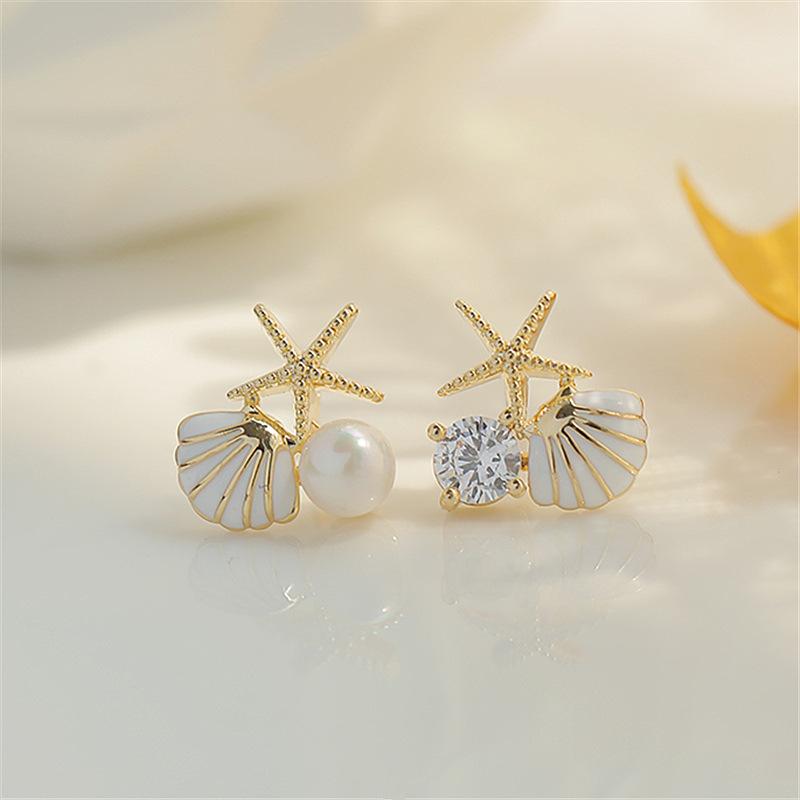 Новые асимметричные серьги-гвоздики с имитацией жемчуга и эмалью в виде морской звезды для женщин, свадебные украшения для девушек, леди, темперамент, кулон