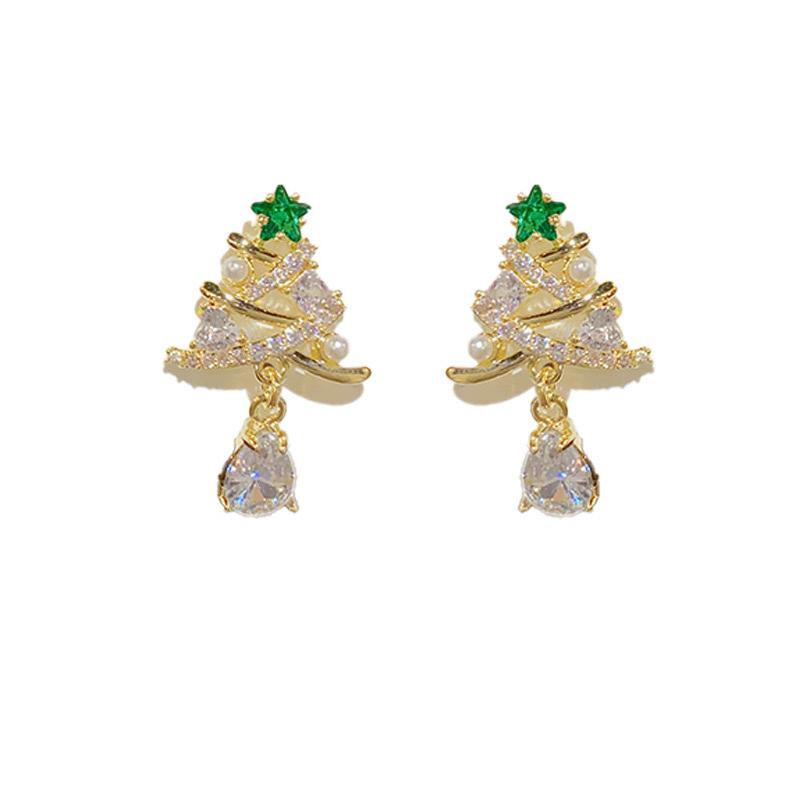 Huitan Яркие серьги-капли в виде рождественской елки с цирконием, женские, для вечеринки, ювелирные изделия с имитацией жемчуга, модные аксессуары золотого цвета
