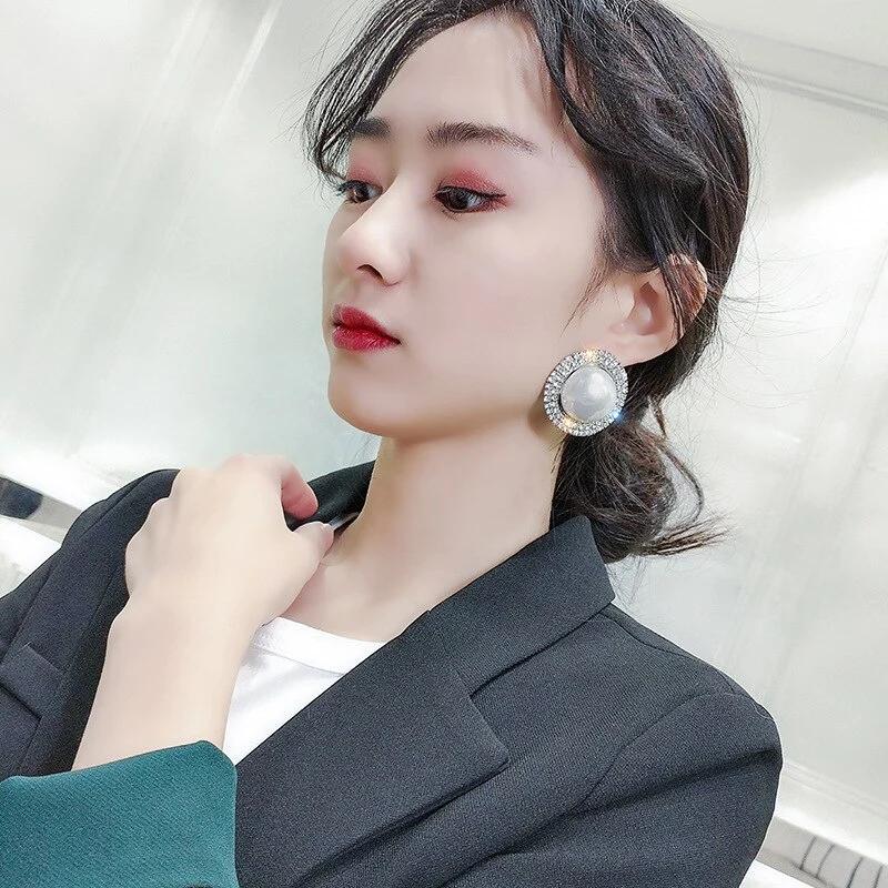 Великолепные серьги-гвоздики Huitan с имитацией жемчуга, роскошные сверкающие аксессуары из фианита, нежные украшения для свадебной вечеринки для женщин