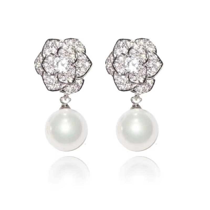 Серьги-капли с искусственным жемчугом в виде цветка Хуэйтань, элегантные, великолепные, для женщин, для прокалывания ушей, свадебные, помолвочные, ювелирные изделия