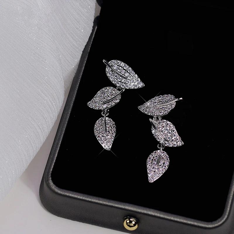 Huitan Изысканные Блестящие Серьги-капли в виде Листьев для Женщин Новые Модные Красивые Аксессуары для Ушей Великолепные Ювелирные Изделия для Свадебной Вечеринки