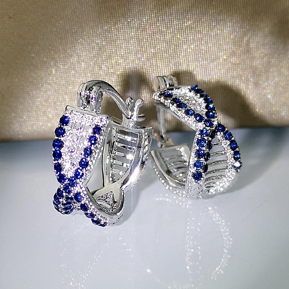 Серьги-кольца в форме креста Huitan Geometric для женщин, роскошные инкрустированные синим/белым кубическим цирконием, темпераментные женские модные украшения