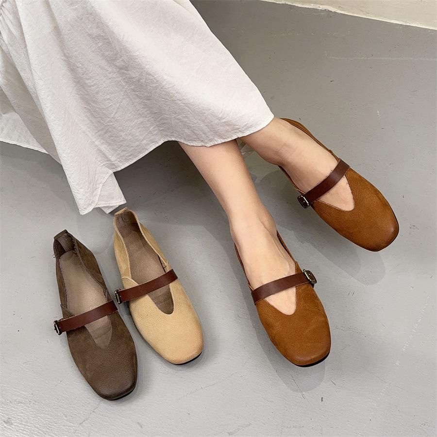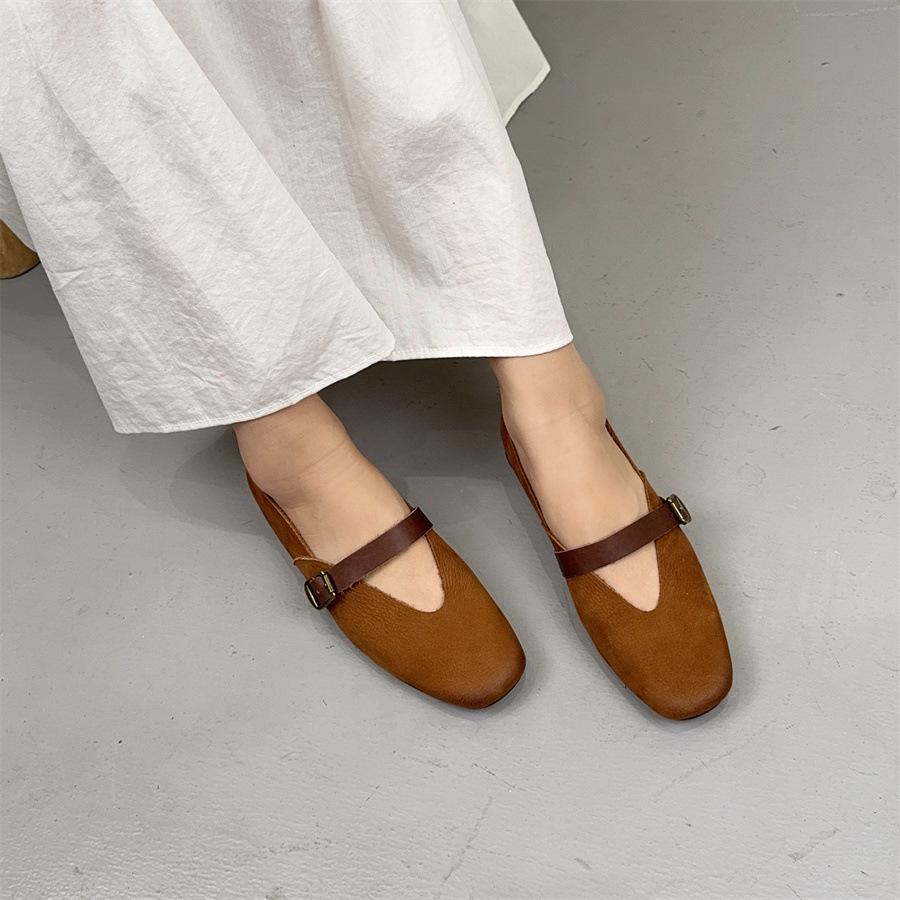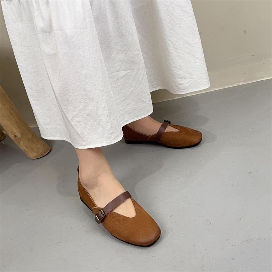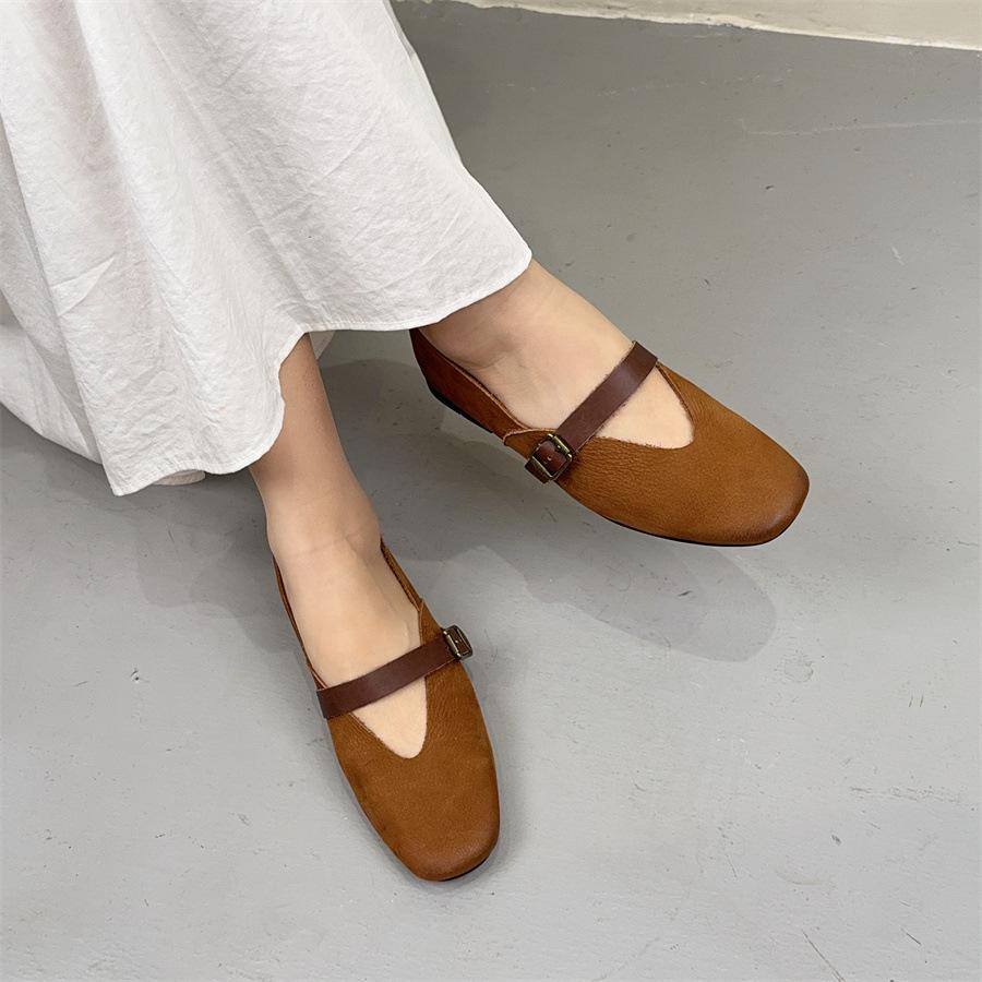 Johnature Туфли на плоской подошве в стиле ретро из натуральной кожи, однотонные, с квадратным носком, универсальные, с мелкой мягкой подошвой