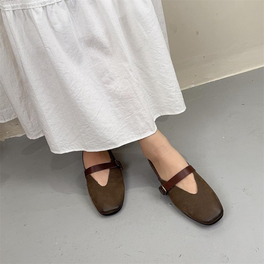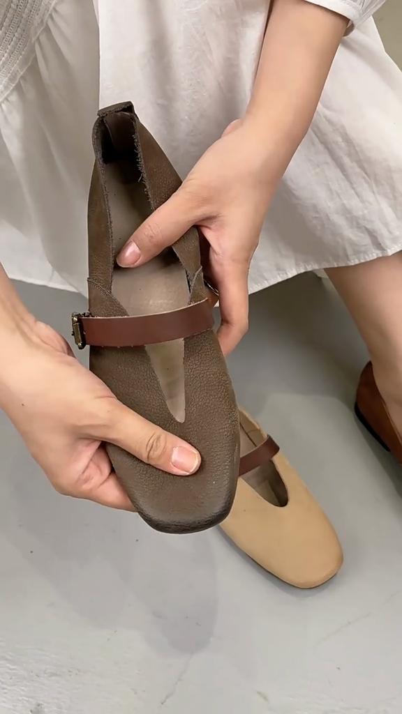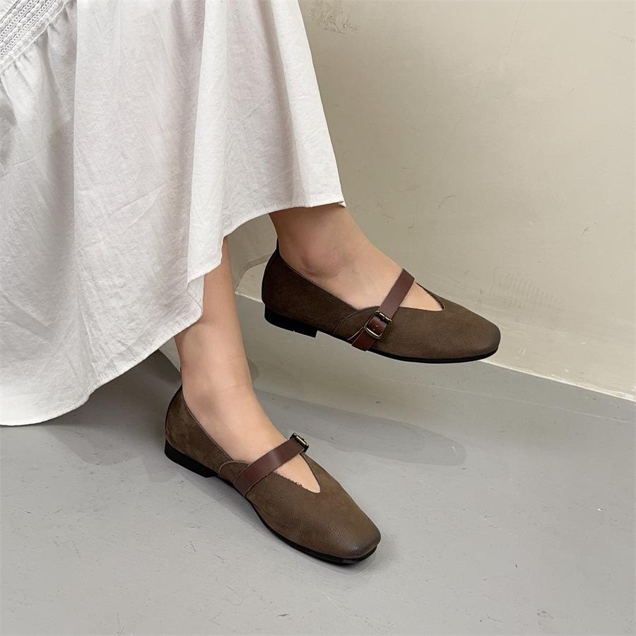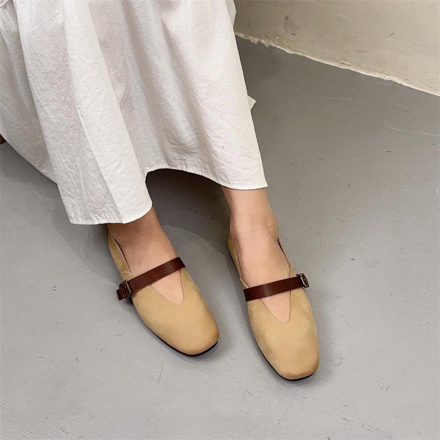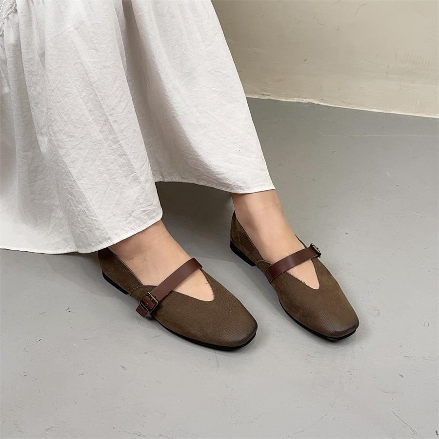 Johnature Туфли на плоской подошве в стиле ретро из натуральной кожи, однотонные, с квадратным носком, универсальные, с мелкой мягкой подошвой