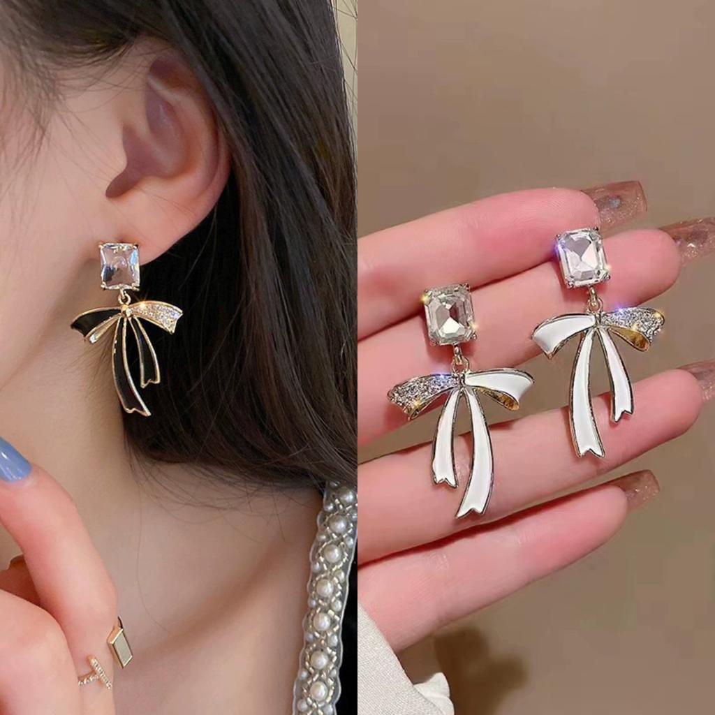 Классические белые черные серьги-бантики для женщин, свадебные серьги с квадратными кристаллами, модные ювелирные изделия с геометрической формой и эмалью — купить товар онлайн с бесплатной доставкой по всему миру!