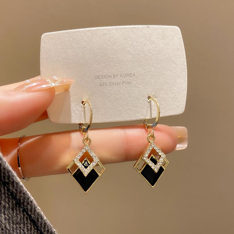 Модные полые ромбовидные серьги-подвески для женщин, вечерние металлические черные эмалевые серьги с масляным кристаллом и геометрией, ювелирные изделия в подарок