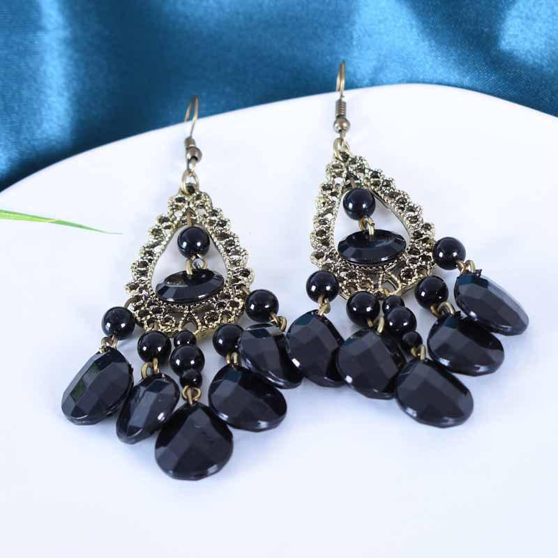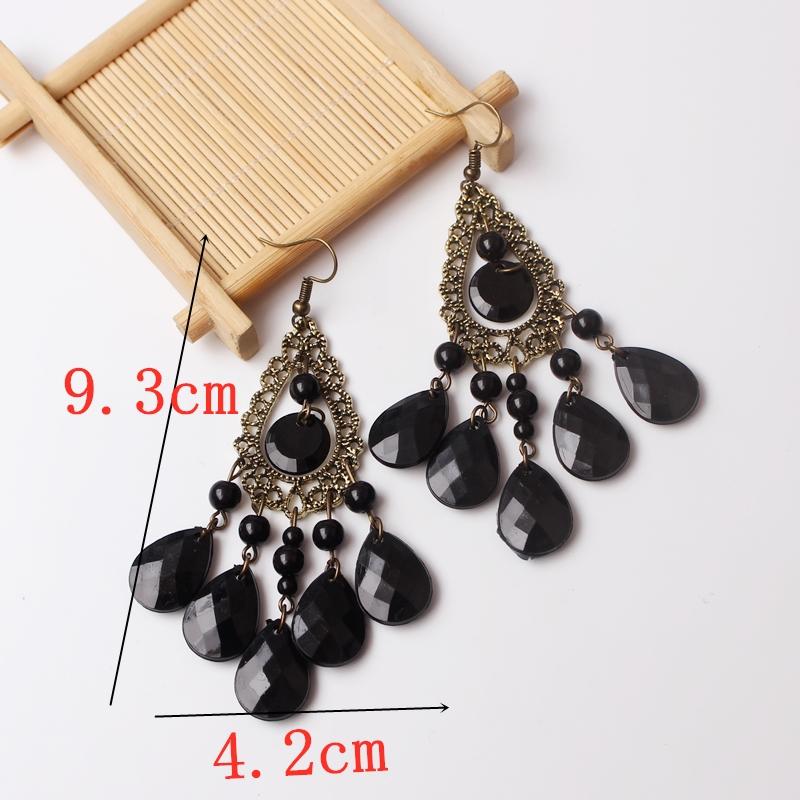 Серьги-подвески в форме павлиньих перьев для женщин, модные черные акриловые металлические длинные висячие серьги-кисточки в стиле ретро