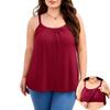 ФУНКЦИИ: Майки больших размеров для женщин со съемными подушечками бюстгальтера, плиссированным круглым вырезом, регулируемой бретелькой, нарядный повседневный, свободный крой и базовый стиль