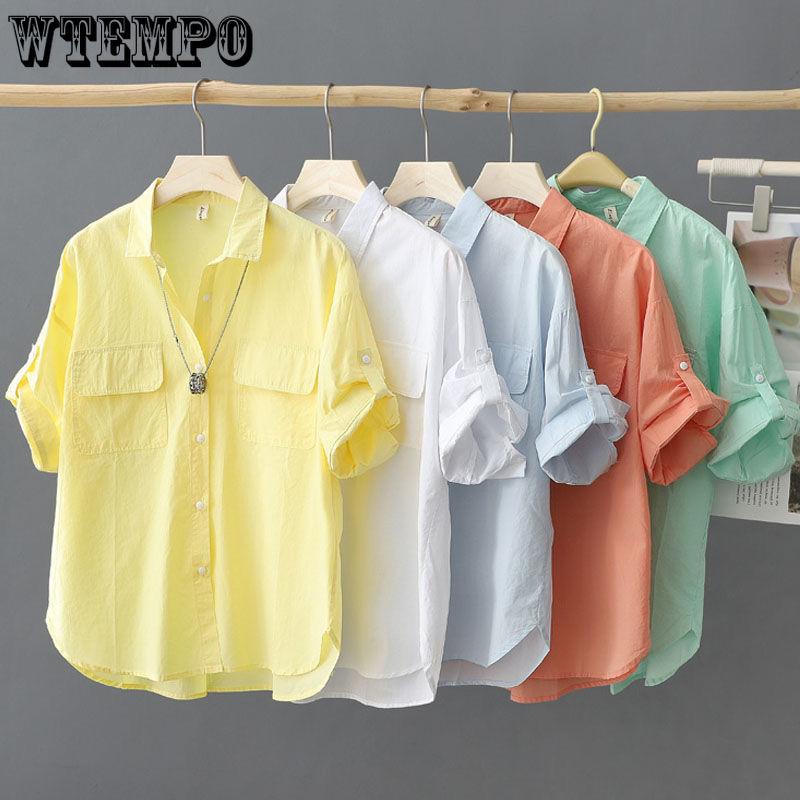 Рубашка с короткими рукавами из чистого хлопка, женская летняя рубашка в корейском стиле, футболка, топ