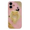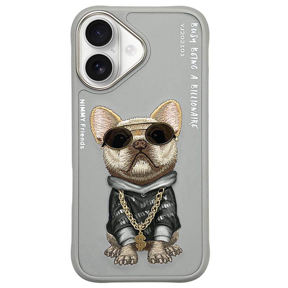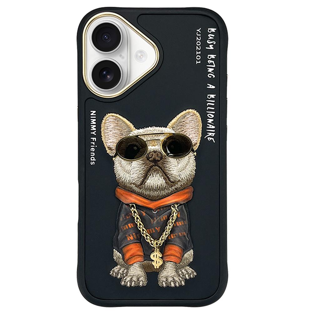 NIMMY for iPhone 16 Case Embroidery PU Leather+PC+TPU Phone Cover - Pink Cat