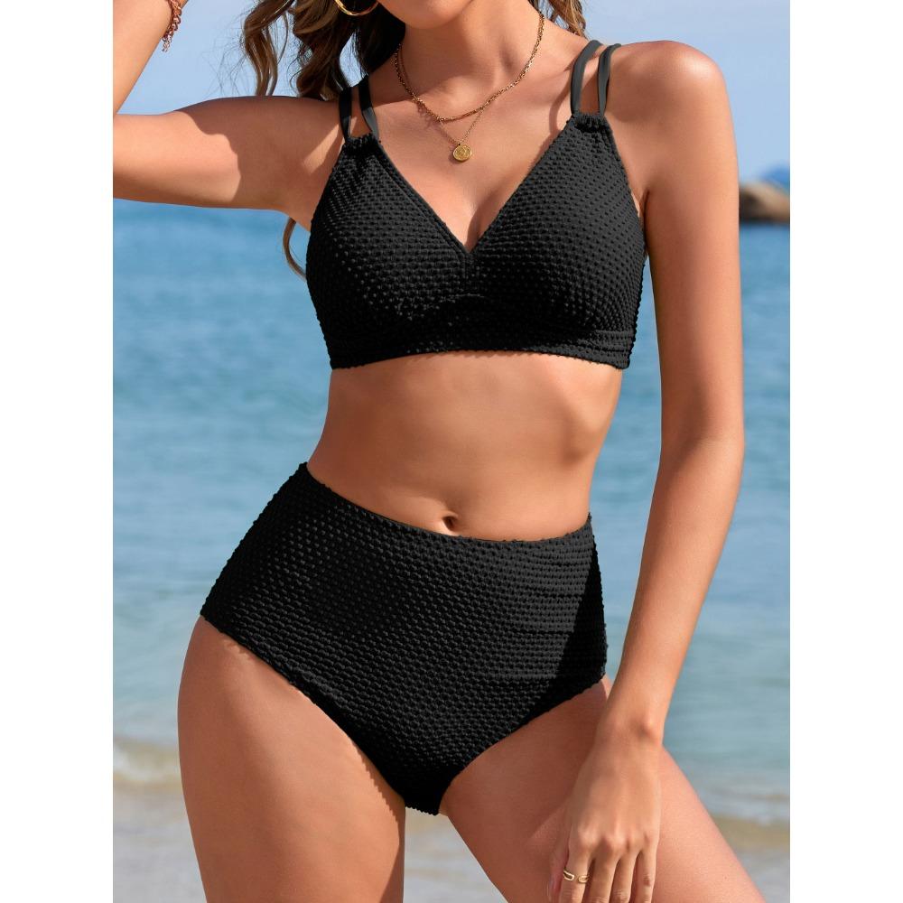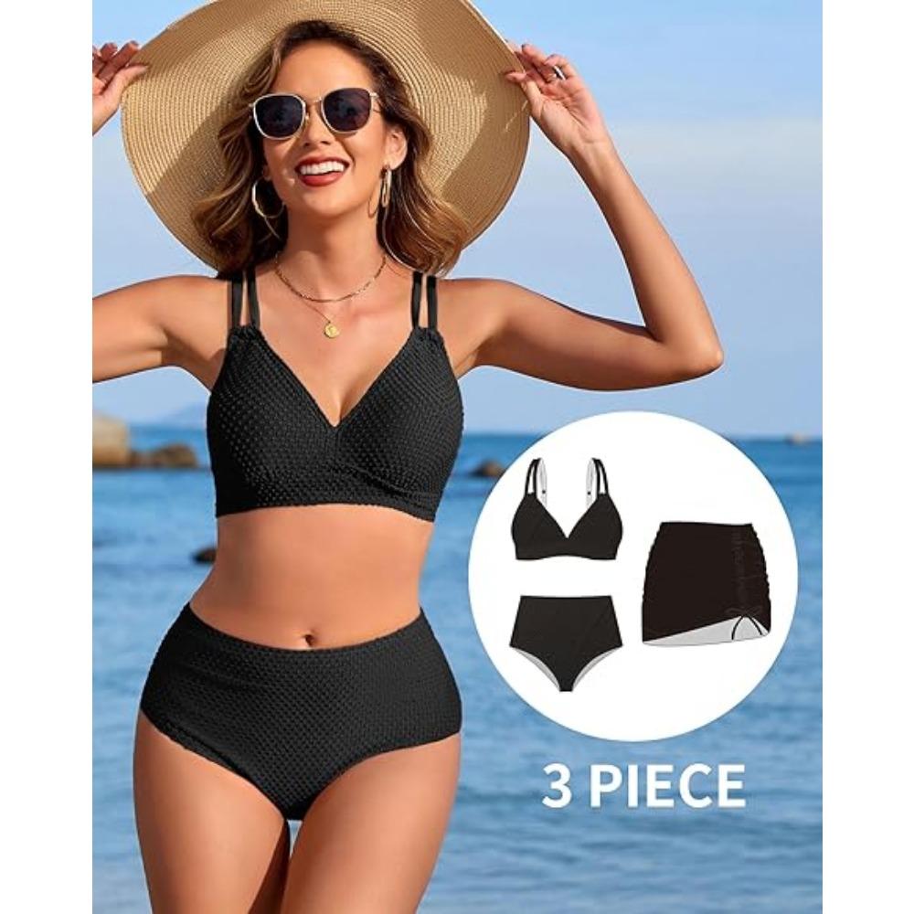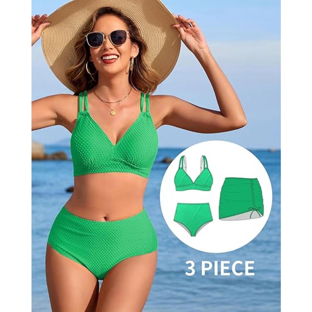 Chrmleaks Женский комплект бикини из 3 частей с текстурой, с высокой талией, полностью закрывающий купальник, завязывающийся на шнурок, с юбкой