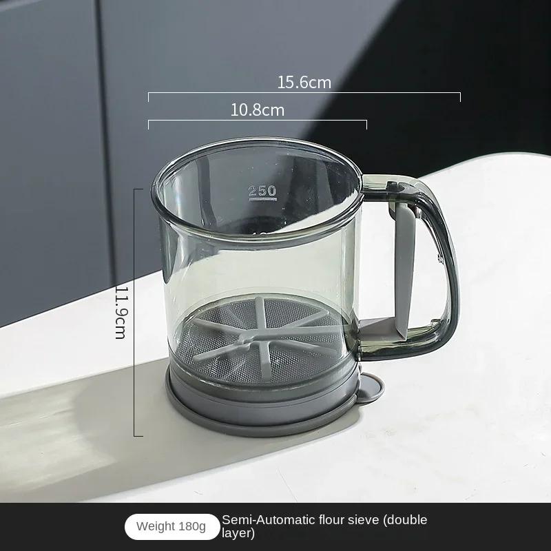 Кухонное сито для муки, ручное полуавтоматическое сито для сахара, шейкер для порошка, ручка, мерный стакан, инструмент для изготовления кухонных инструментов для выпечки
