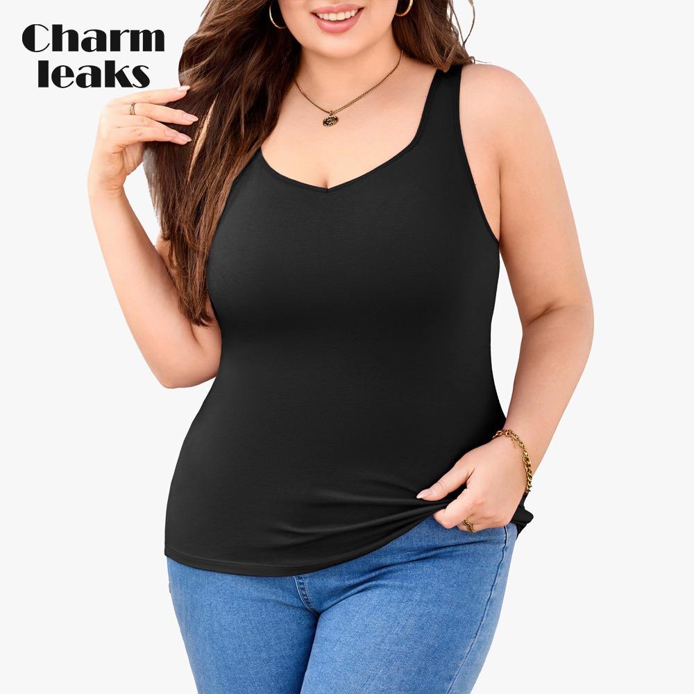 CHARMLEAKS Женские майки больших размеров со встроенным бюстгальтером с подкладкой, регулируемые бретели, V-образный вырез, хлопковые рубашки-майки 1X-4X