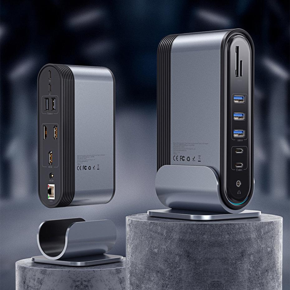 Хаб Baseus отличается тремя портами HDMI, позволяющими подключать несколько дисплеев для повышения четкости и продуктивности.. Независимо от того, решаете ли вы сложный проект или наслаждаетесь захватывающими мультимедийными впечатлениями, эта функция обеспечивает бескомпромиссное качество изображения.. Поддержание надежного сетевого подключения имеет решающее значение, и с портом RJ45 вы можете рассчитывать на стабильный проводной доступ в Интернет.