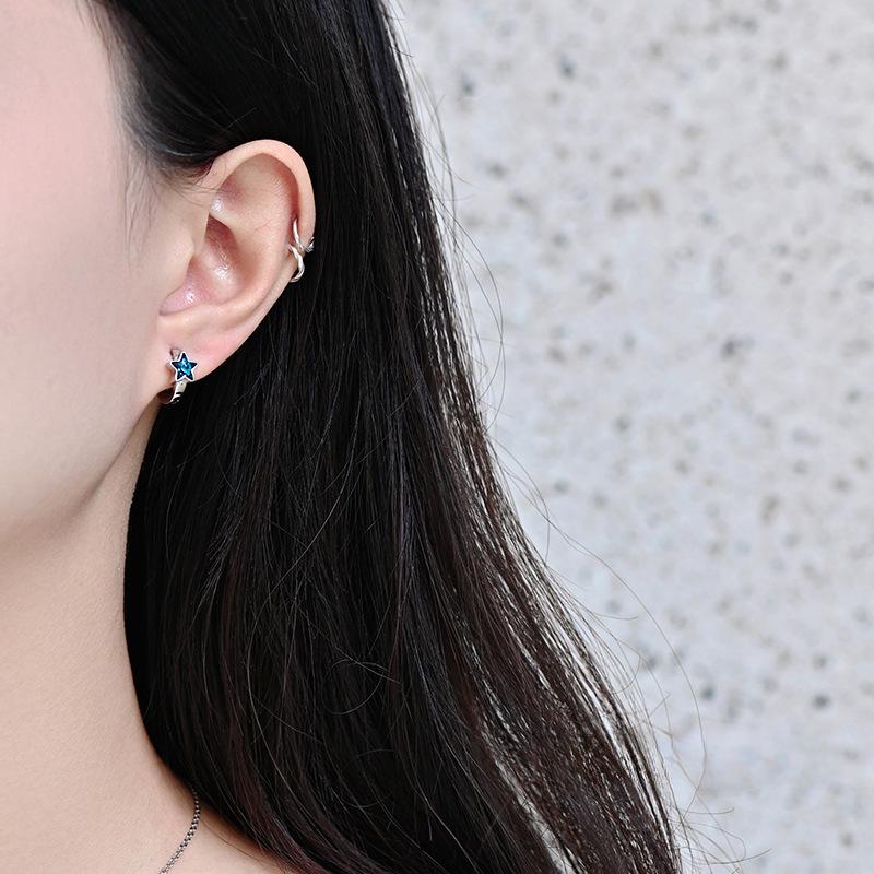 Синяя звезда пуговица уха свет роскошные нишевые высококачественные новые универсальные простые маленькие серьги
