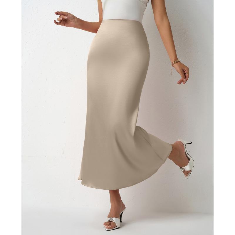 Женская утягивающая юбка из атласа на весну и лето, однотонная, средней и длинной длины, облегающая бедра, юбка-рыбий хвост
