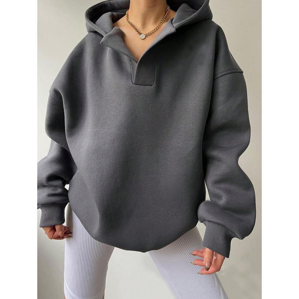 GMXIA Осенне-зимняя женская толстовка с капюшоном, однотонная, с длинным рукавом, свободная толстовка с капюшоном для женщин