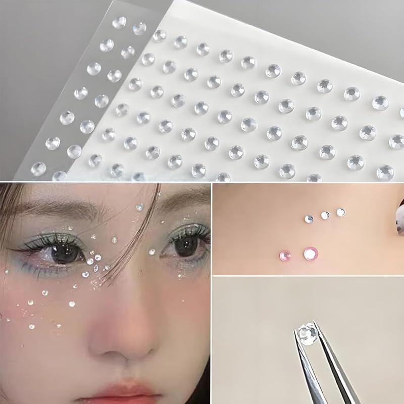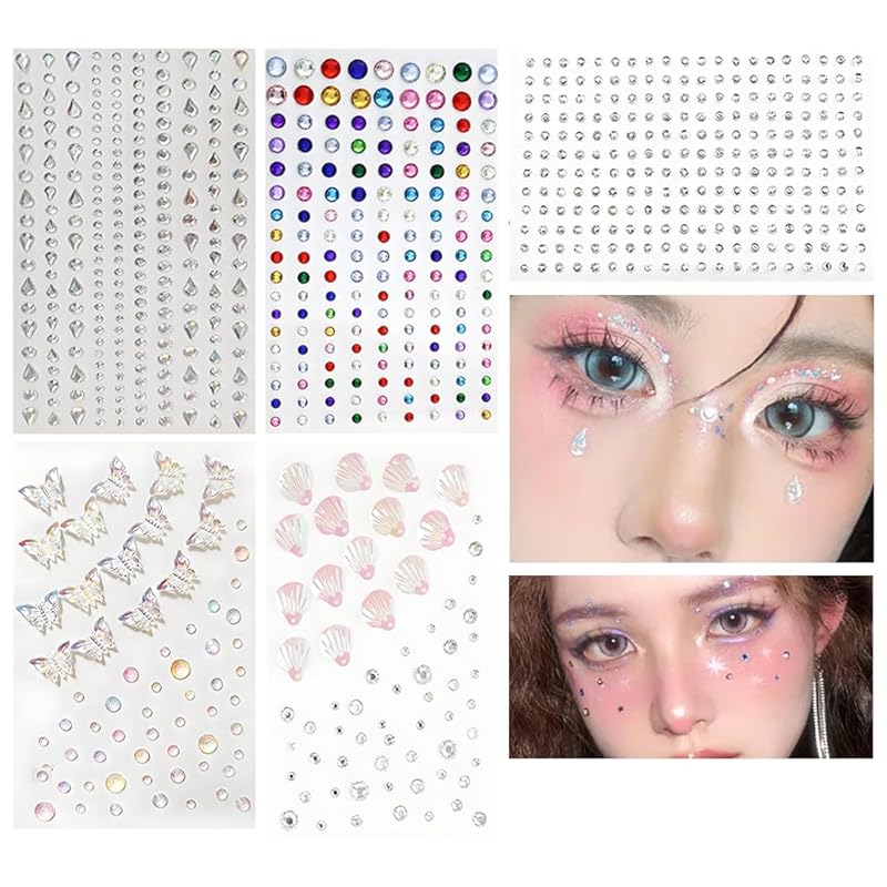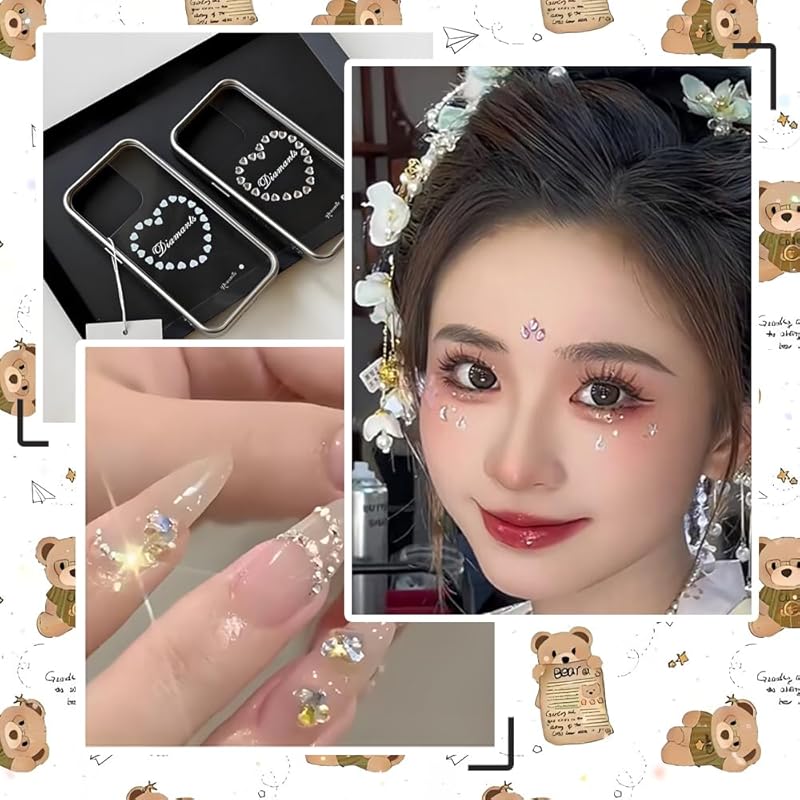 [Легко отклеиваются и приклеиваются] Эти стразы предварительно установлены и самоклеящиеся. Просты в использовании, легко отклеиваются и приклеиваются в соответствии с вашим дизайном. Блестящие наклейки для лица можно использовать снова и снова.