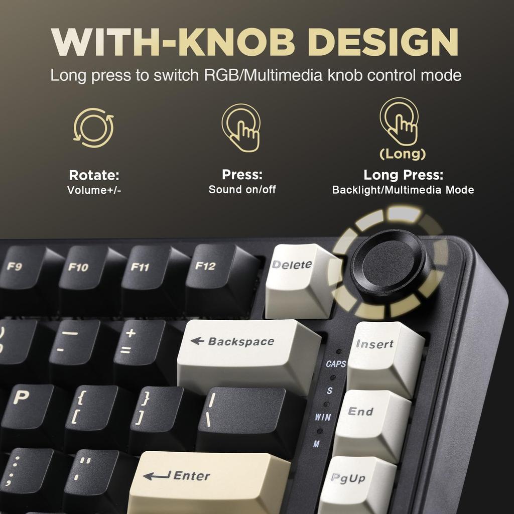 - Иммерсивная RGB-подсветка и кнопочное управление: Настройте свою установку с помощью более 20 динамических эффектов подсветки RGB. Клавиатура B75 RGB оснащена многофункциональной ручкой, которая позволяет легко регулировать яркость подсветки и громкость устройства, обеспечивая плавные переходы между различными режимами и полное погружение.
