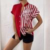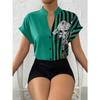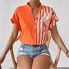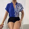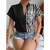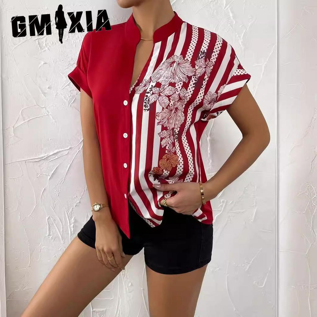 GMXIA Летняя женская повседневная рубашка с полуоткрытым воротником и модным принтом в стиле пэчворк