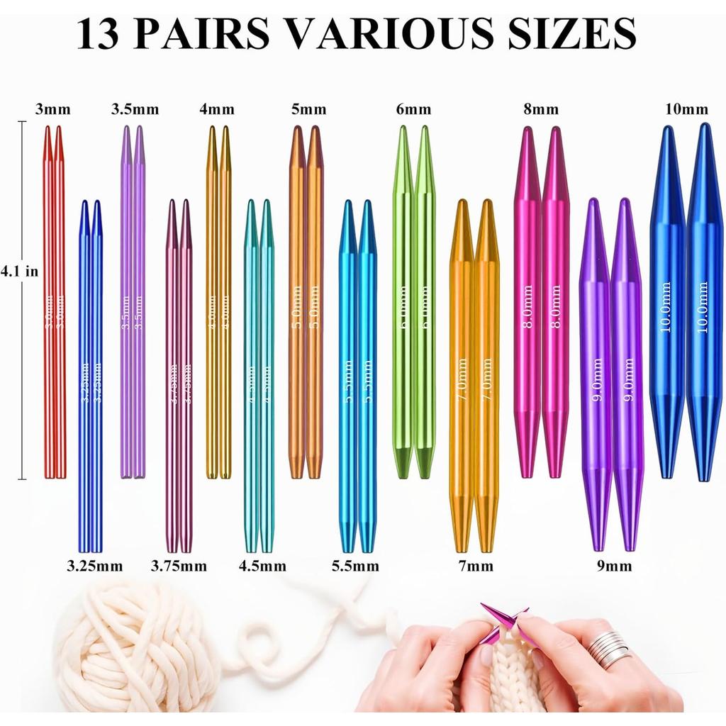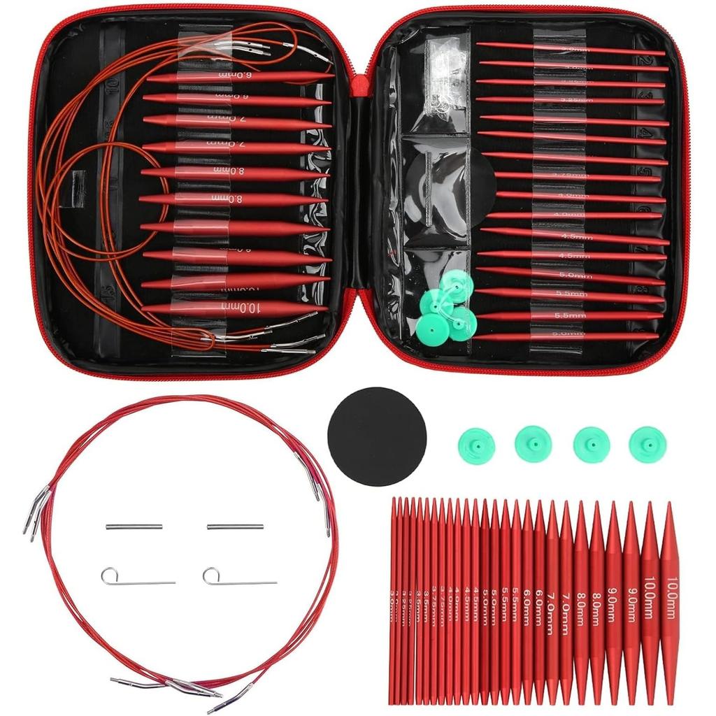 【Набор спиц для вязания】—— Включает 13 пар 4-дюймовых алюминиевых круговых спиц, съемных и взаимозаменяемых, охватывающих размеры 3,0 мм, 3,25 мм, 3,5 мм, 3,75 мм, 4,0 мм, 4,5 мм, 5,0 мм, 5,5 мм, 6,0 мм, 7,0 мм, 8,0 мм, 9,0 мм и 10,0 мм. 4 троса размерами 32 см / 12,6 дюйма, 38 см / 15 дюймов, 42 см / 16,7 дюйма, 54 см / 21,6 дюйма, 4 позиционирующие кнопки, 2 кабельных соединителя, 2 фиксирующих ключа, 1 инструмент для прокладки и 1 кожаная сумка
