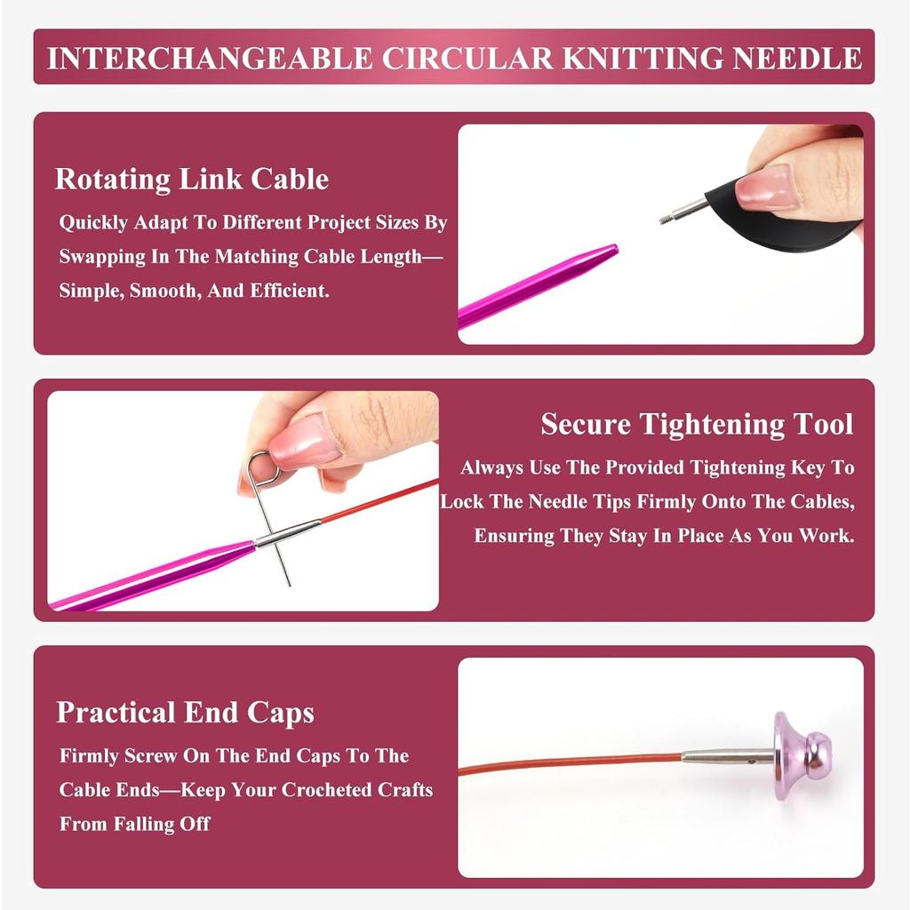 【Идеальный подарок для любителей вязания】—— Этот набор сменных спиц станет отличным подарком как для начинающих, так и для опытных вязальщиков.. Будь то дни рождения, праздники или особые случаи, этот набор предоставляет все необходимое для начала вашего следующего вязального проекта, что делает его идеальным подарком для друзей,