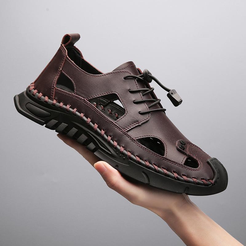 Летние мужские кожаные сандалии, легкие дышащие пляжные сандалии для отдыха на природе, повседневная обувь — купить товар онлайн с бесплатной доставкой до всему миру!