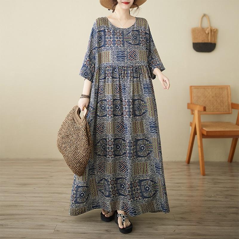 Новое винтажное платье с цветочным принтом больших размеров с коротким рукавом для женщин, повседневное свободное длинное летнее платье — купить товар онлайн с бесплатной доставкой по всему миру!