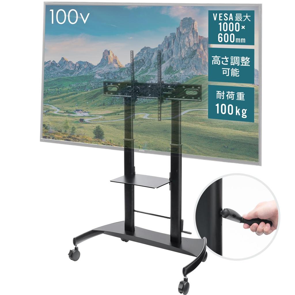 Это большая подставка под телевизор, которая совместима с телевизорами размером около 100 дюймов и весом менее 100 кг.. В комплекте идет ручка, позволяющая регулировать высоту при включенном телевизоре.