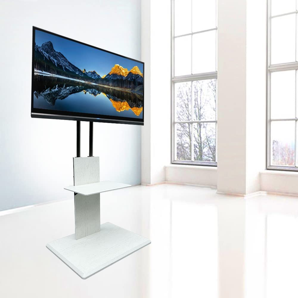 ✿Подставка под телевизор с поворотом, который не показывает провода: Тонкая глубина конструкции позволяет аккуратно разместить его вдоль стены, как настенный телевизор, поэтому он не будет давить и будет выглядеть чистым и открытым, как настенный телевизор. Вы можете хранить все провода на задней стороне крышки, чтобы избежать путаницы проводов.. В комплект также входит полка, на которой удобно хранить рекордеры и игровые приставки, так что места для хранения предостаточно.