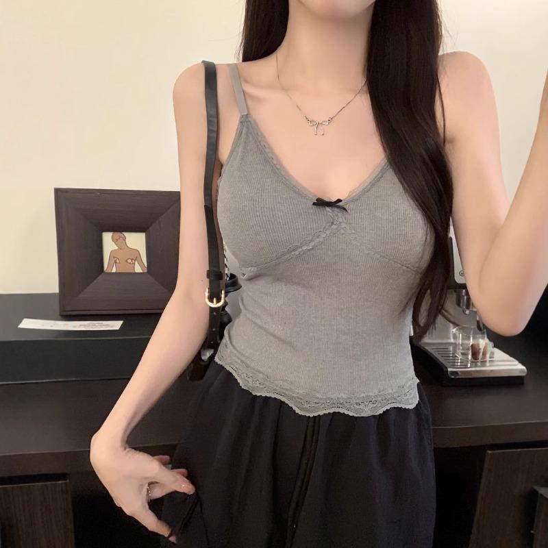 Бесшовный жилет-халтер с V-образным вырезом, кружевным бантом в балетном стиле, облегающий покрой внутри с короткой базовой рубашкой — купить товар онлайн с бесплатной доставкой по всему миру!