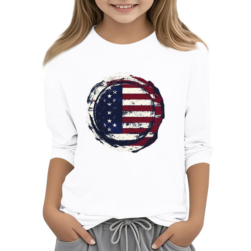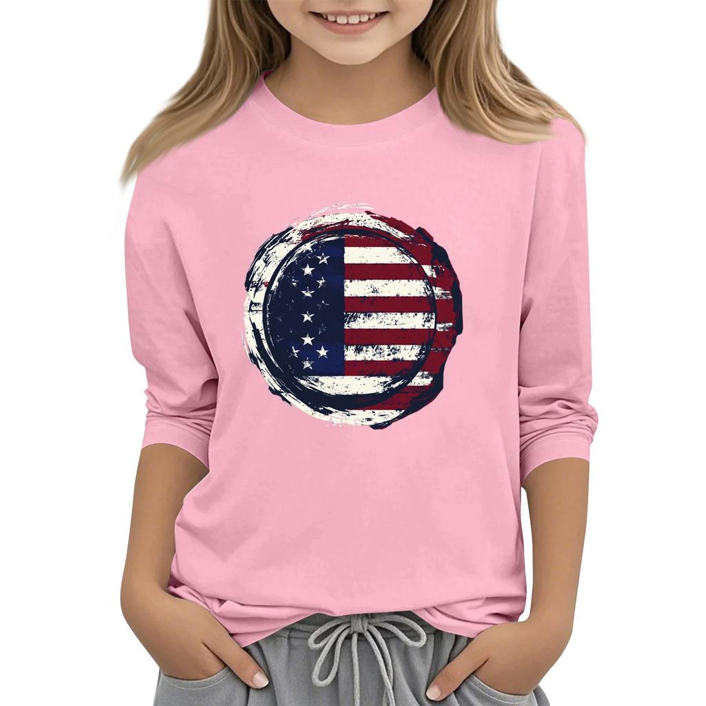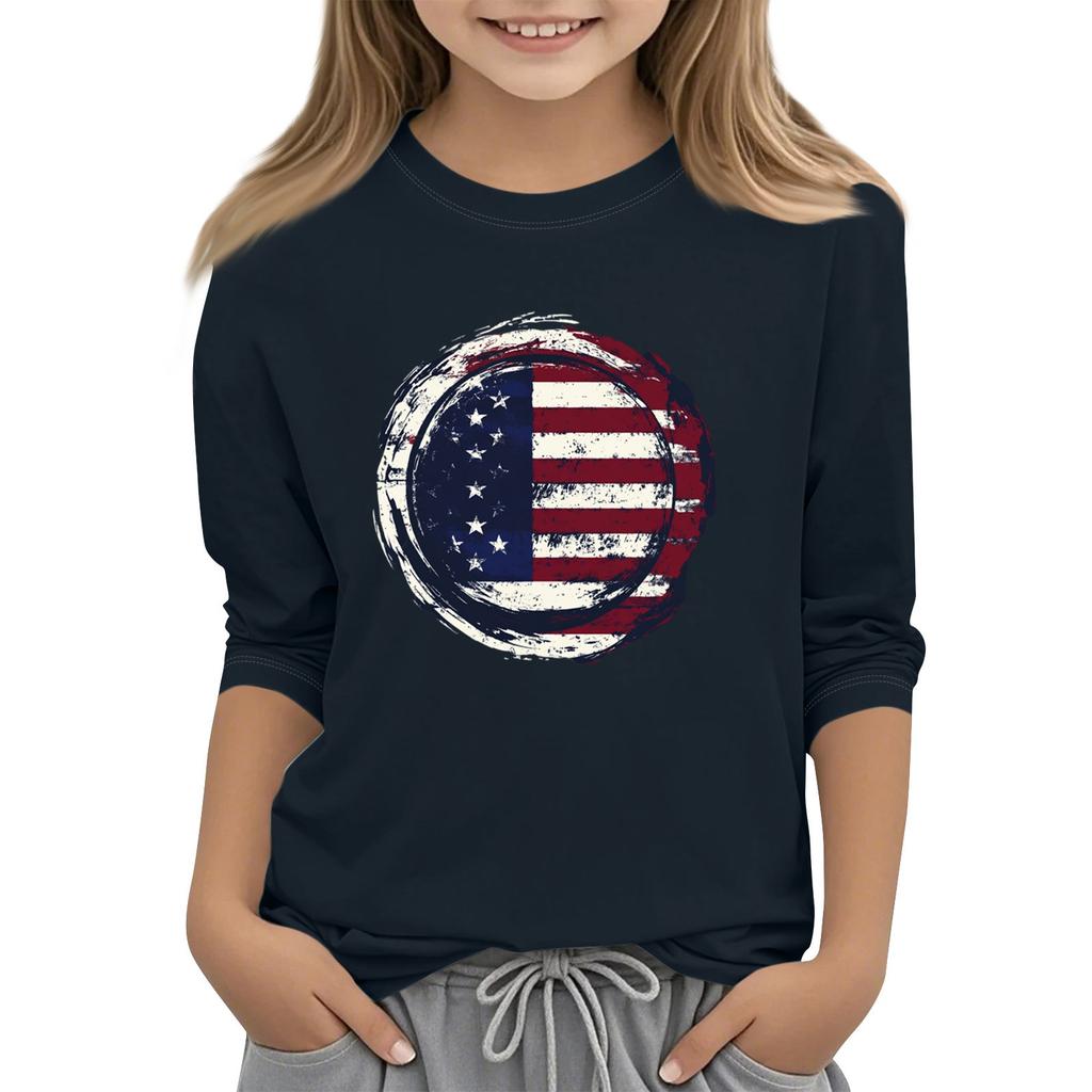 Детская повседневная футболка с круглым вырезом и принтом «День независимости» с рукавом 3/4