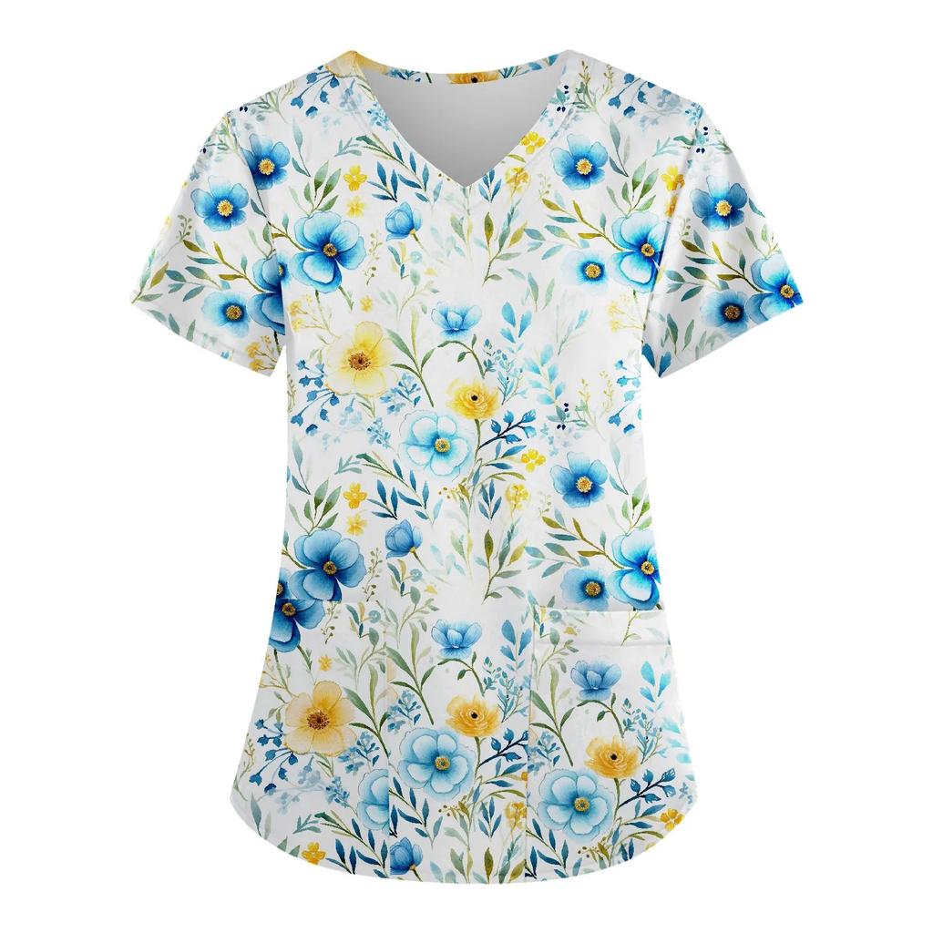 Летняя женская футболка с цветочным принтом 3D, повседневная модная футболка с V-образным вырезом, свободный свитер с коротким рукавом, повседневные топы, футболки, размер XXS-6XL