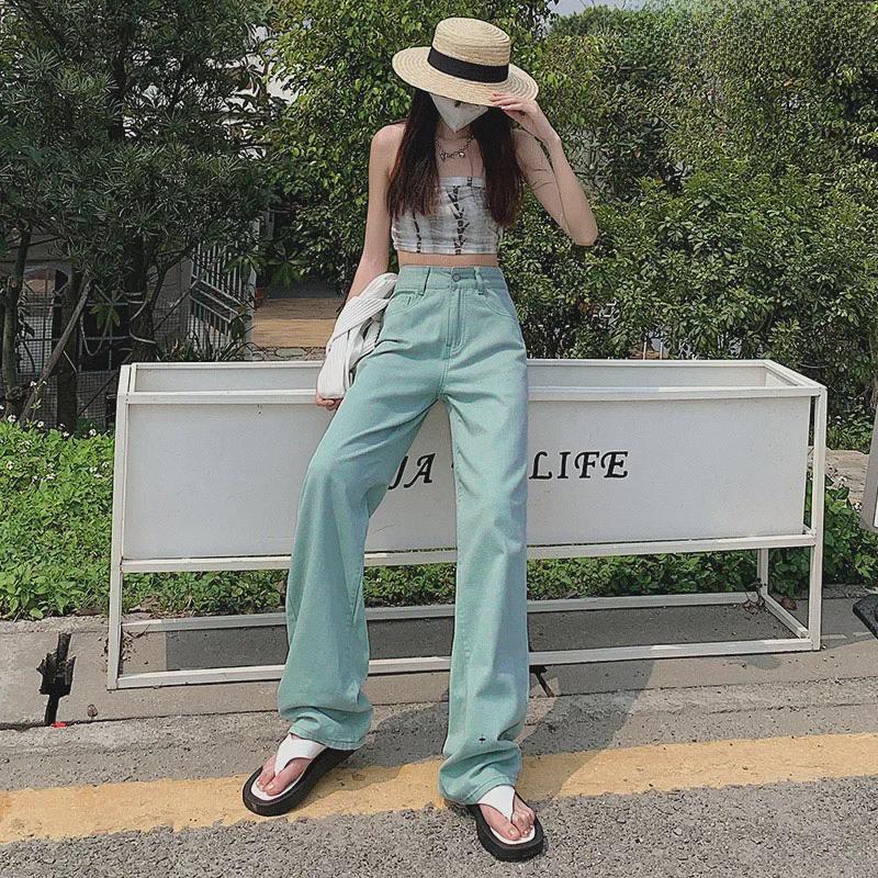 Женские джинсы широкого кроя с высокой талией мятно-зеленого цвета, корейский стиль, длина до пола, свободный крой, размер плюс, лето. — купить товар онлайн с бесплатной доставкой по всему миру!