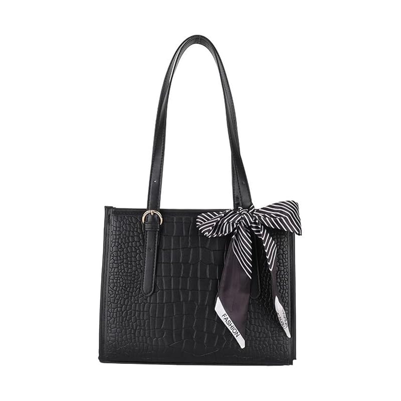 [enoco land] женская сумка-тоут для поездок на работу в школу, большая вместимость, осенняя координация для взрослых, крокодиловый узор, элегантность с лентой (черный)