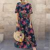 Летнее платье с цветочным принтом - женское платье макси с круглым вырезом, повседневное, с коротким рукавом, свободное, для пляжного отдыха