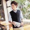 Мужской тонкий трикотажный шерстяной жилет с V-образным вырезом - модный корейский свитер без рукавов