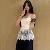 Хлопок Темперамент V-образный вырез Стиль девушки Красивые кружева Маленькие подтяжки Женская атмосфера Ощущение складки через сетку Лоскутная занавеска с пердежом