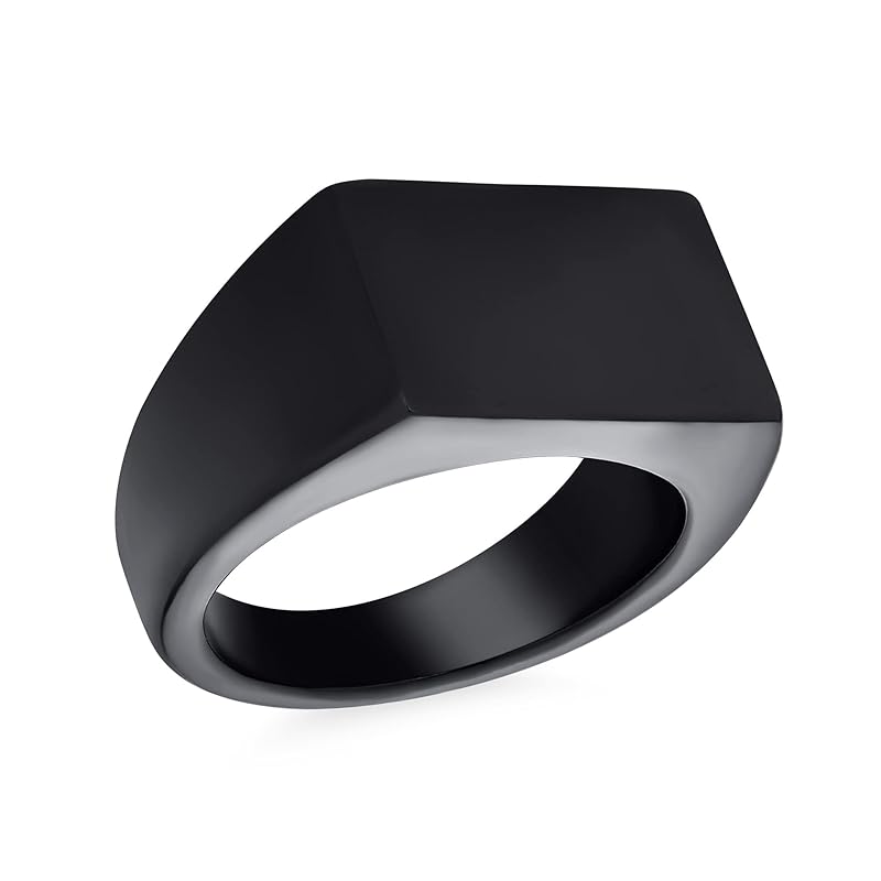 Традиционное мужское черное прямоугольное кольцо-монограмма Insignia. Благодаря своей гладкой, изысканной матовой отделке, это кольцо излучает современную изысканность. Выполненное в геометрическом стиле печатки, оно идеально сочетает в себе мужественность и стиль.