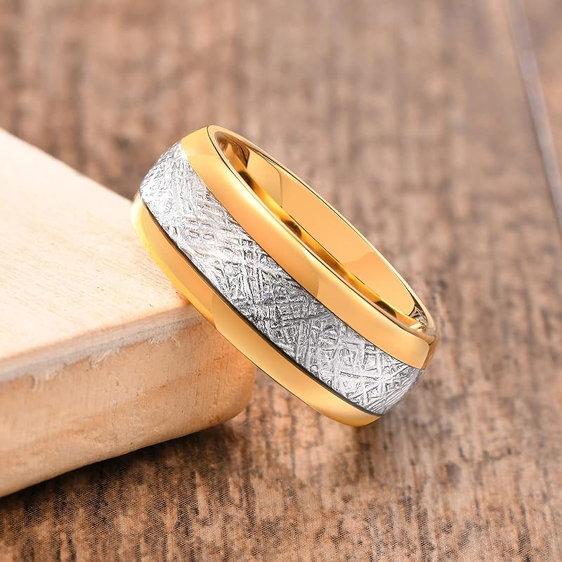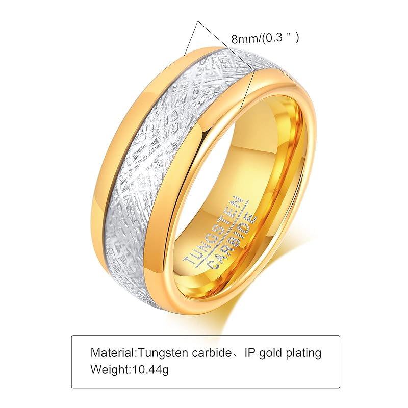 Material: Tungsten Ring No. 20 Gold Silver Weight: 10.44g Tungsten specific gravity: almost the same as gold, hardness: comparable to diamond.