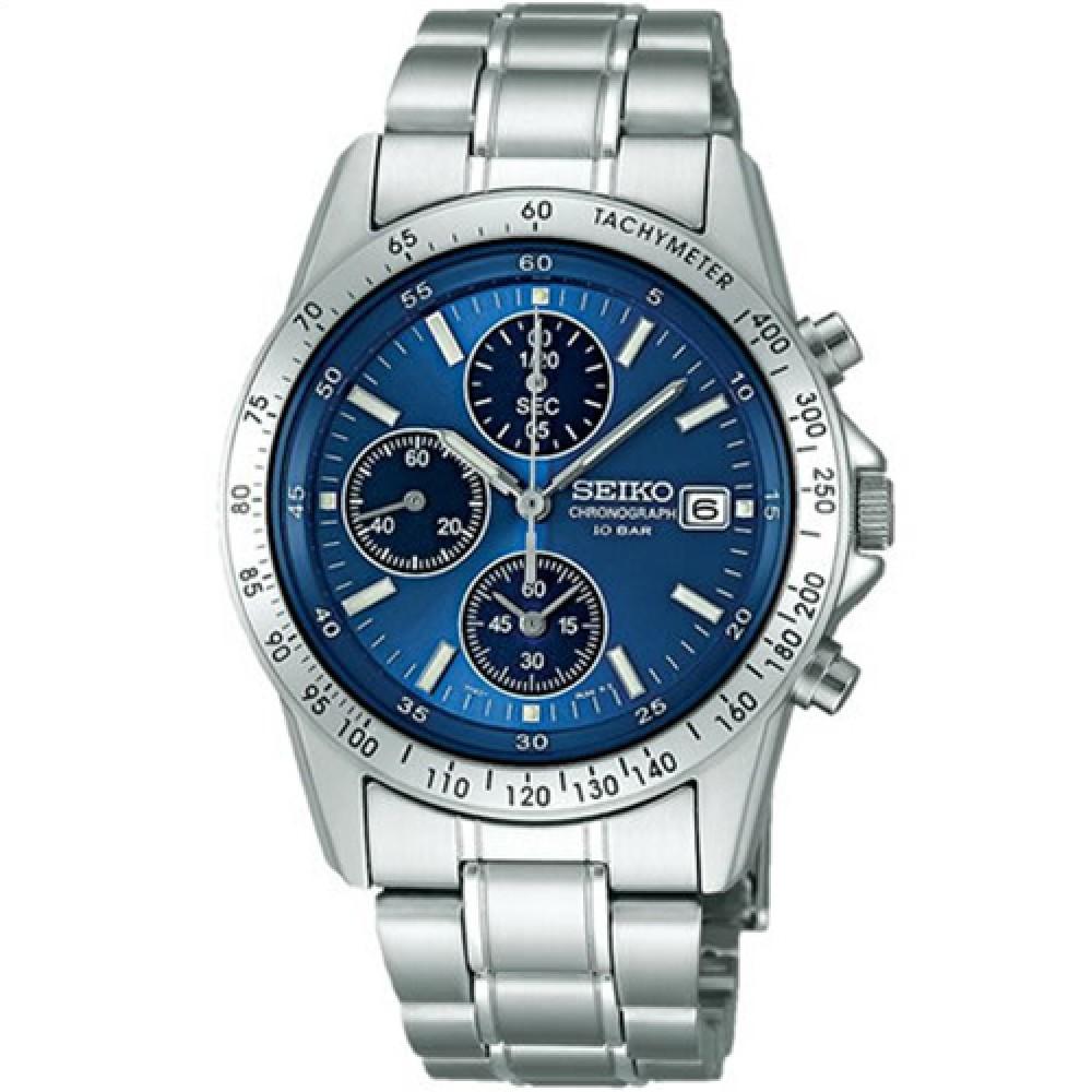 Корпус часов Seiko Spirit из нержавеющей стали имеет круглую форму, диаметр 38,5 мм, а толщина 9,6 мм.. Синий циферблат отображает аналоговый дисплей, а стекло Hardlex обеспечивает прочность и четкость изображения.. Браслет из нержавеющей стали серебристого цвета дополняет общий вид часов.