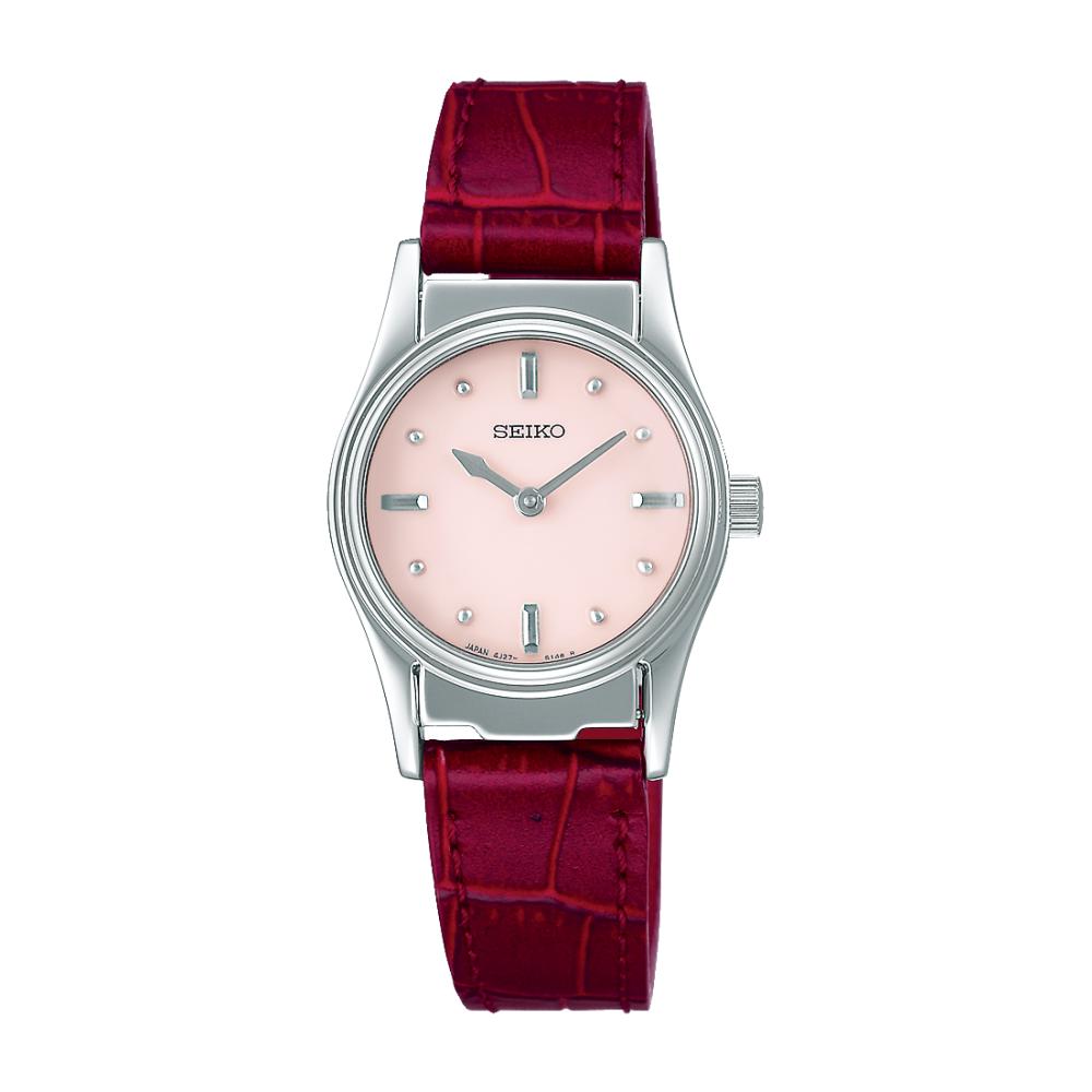 Кожаный ремешок часов Seiko Tactile Watch имеет соответствующий розовый цвет, дополняющий циферблат и создающий целостный образ.. Благодаря водонепроницаемости эти часы подходят для повседневного ношения и выдерживают легкие брызги воды.